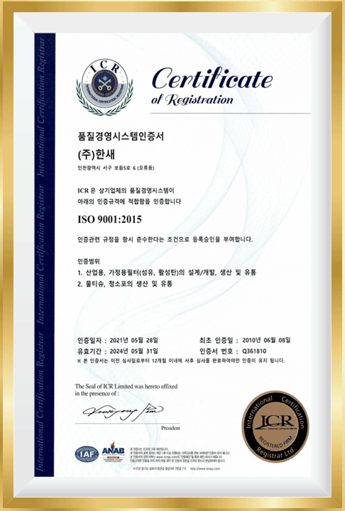 ÇÑ»õ ÀÎÁõ¼Ç°Áú°æ¿µ½Ã½ºÅÛÀÎÁõ ISO 9001-2015